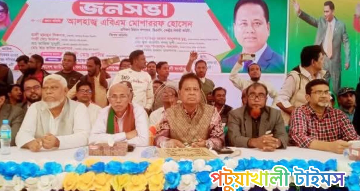 কলাপাড়া প্রতিনিধিঃ পটুয়াখালী-৪ (কলাপাড়া-রাঙ্গাবালী) আসনের বিএনপি মনোনীত সংসদ সদস্য প্রার্থী ও কেন্দ্রীয় বিএনপির প্রশিক্ষণ বিষয়ক সম্পাদক এবিএম মোশাররফ হোসেন বলেছেন, আগামী দিনে অবাধ ও সুষ্ঠু নিরপেক্ষ নির্বাচন হয়, তাহলে আমরা এবং দেশের মানুষ বিশ্বাস করে বিএনপি ক্ষমতায় যাবে, ইনশাআল্লাহ । আর বিএনপি ক্ষমতায় গেলে আমাদের নেতা জনাব তারেক রহমান হবেন প্রধানমন্ত্রী। তাই এই এলাকার উন্নয়ন করতে ধানের শীষের প্রার্থী কে বিজয়ী করে সংসদে পাঠাতে হবে।’ মোশাররফ হোসেন আরো বলেন, ‘ আমরা আল্লাহ তায়ালার ওপর বিশ্বাস রাখি। কোরানকে এবং আল্লাহর রাসুলকে বিশ্বাস করি। আমরা ধর্মভীরু। আমাদের সাধারণ ভোটারদের দুই টা দল ধর্মের দোহাই দিয়ে ভোট চায়। তিনি প্রশ্ন রেখে বলেন, ‘ পাখা কিংবা দাড়িপাল্লা মার্কায় ভোট দিলে নাকি নবী পাবেন ভোট, কিংবা বেহেশতে যাওয়া যায়- ভোটের জন্য এমন মিথ্যা অপপ্রচার চালানো হচ্ছে।’ এর থেকে সবাই কে সতর্ক থাকার আহ্বান জানান।