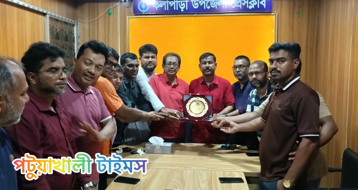 কলাপাড়া (পটুয়াখালী) প্রতিনিধি: সামাজিক অবক্ষয় রোধ ও উন্নয়নে বিশেষ অবদানের জন্য কলাপাড়া উপজেলা প্রেসক্লাব’র পক্ষ থেকে কলাপাড়া পৌর শ্রমিক দলের সভাপতি নাসির মোল্লা মিন্টুকে সংবর্ধনা ও সম্মাননা ক্রেস্ট উপহার দেয়া হয়েছে। বুধবার (১৫ এপ্রিল) সন্ধ্যা ৭ টায় সংগঠনের হল রুমে এ সম্মামনা প্রদান করা হয়। অনুষ্ঠানে কলাপাড়া উপজেলা প্রেসক্লাব’র সভাপতি কবির তালুকদারের সভাপতিত্বে প্রধান অতিথি […]