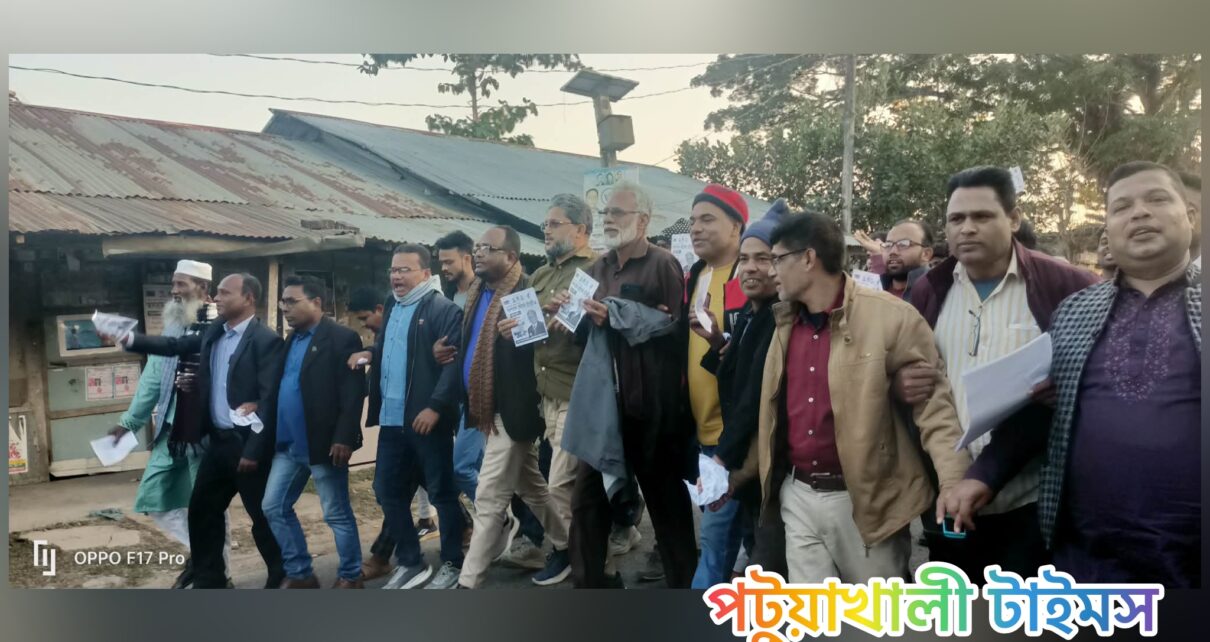 মির্জাগঞ্জে আলতাফ হোসেন চৌধুরীর পক্ষে লিফলেট বিতরণ