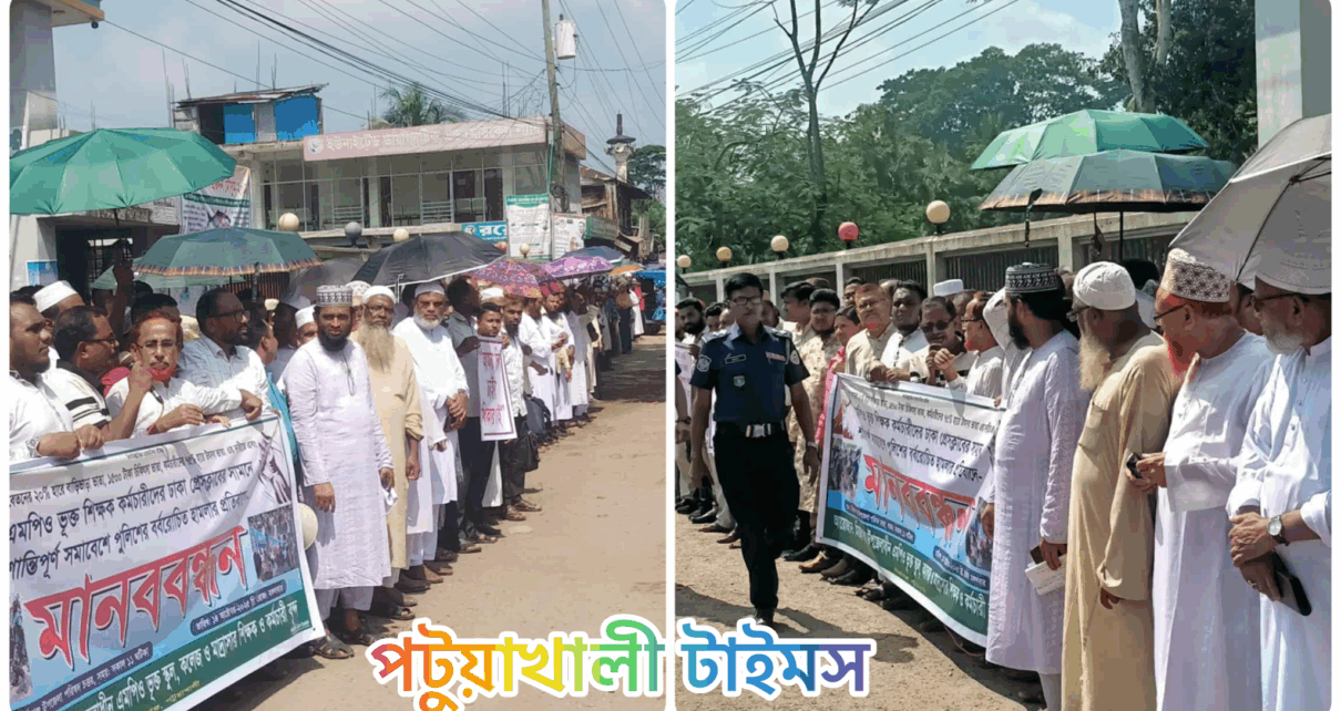 জাতীয় প্রেসক্লাবের সামনে শিক্ষকদের ওপর হামলার প্রতিবাদে মির্জাগঞ্জে শিক্ষকদের মানববন্ধন